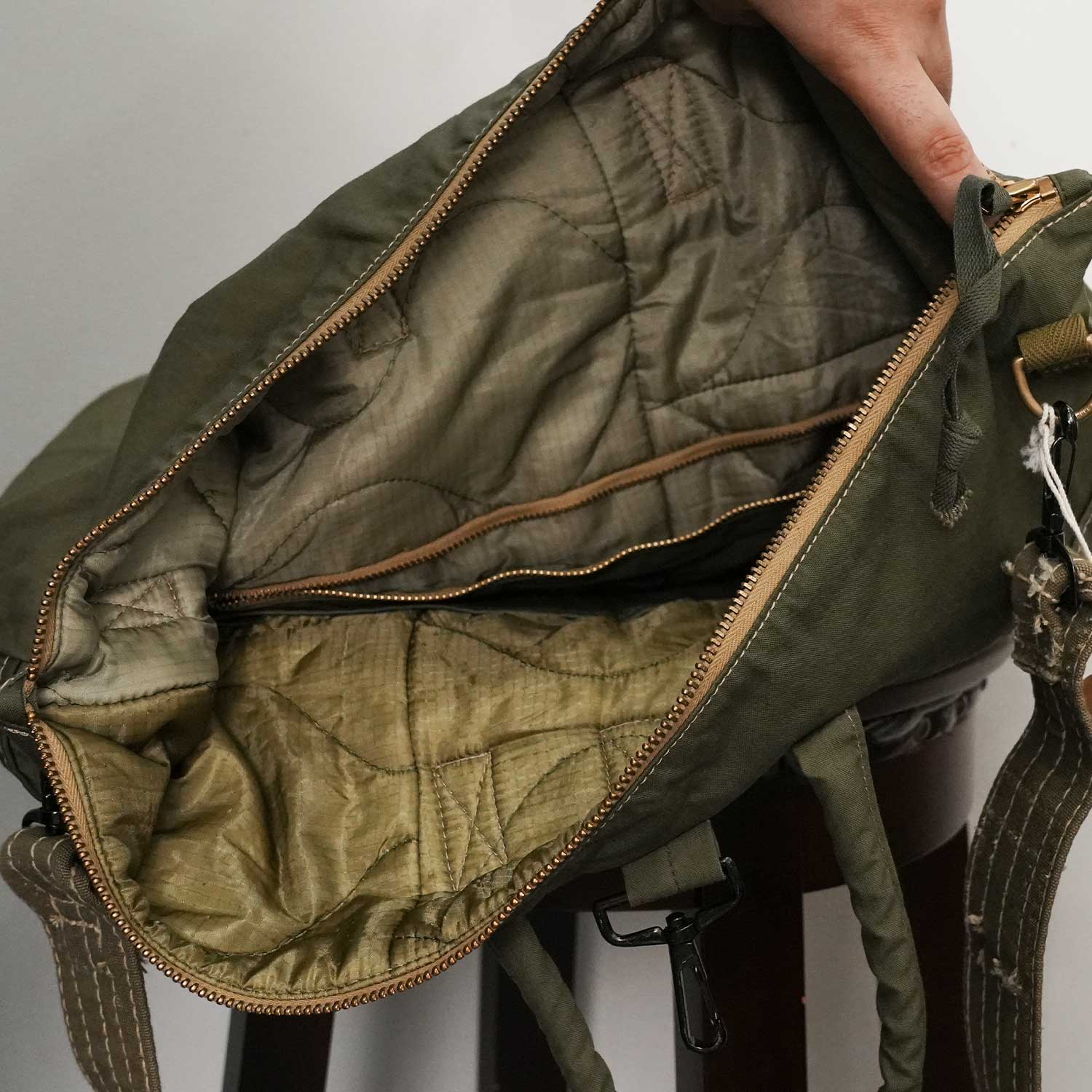 1950年代 50's アメリカ軍 USアーミーのスリーピングバッグ生地 リメイクショルダーバッグ(ヘルメットバッグ) Mサイズ【T.K GARMENT SUPPLY】
