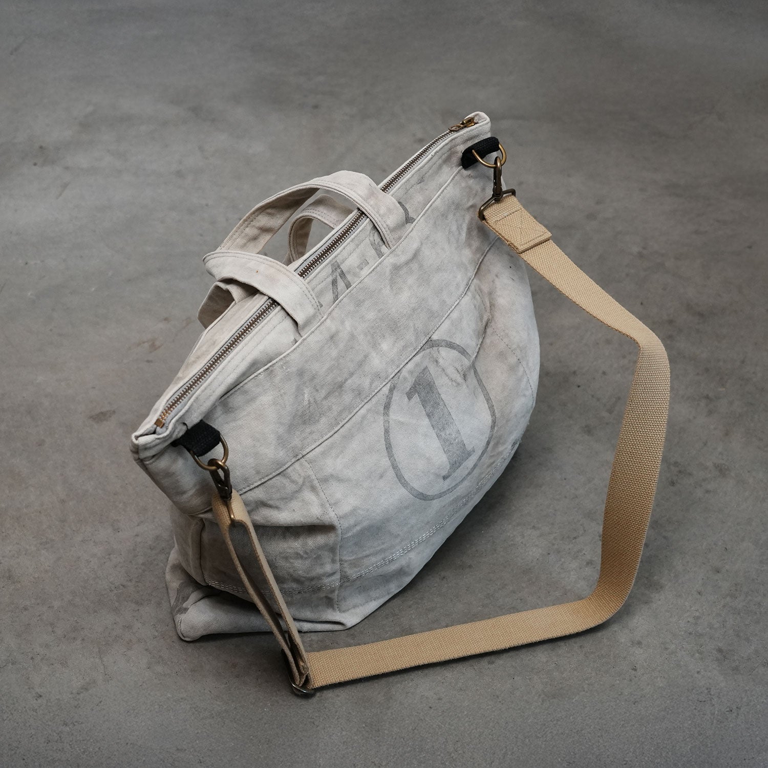 50年代のUSメールバッグが持つ“生地の歴史”を、いまの生活で使いやすい形に。 ほどよい横幅と整理しやすい内ポケットで、日常の荷物を品よくまとめます。