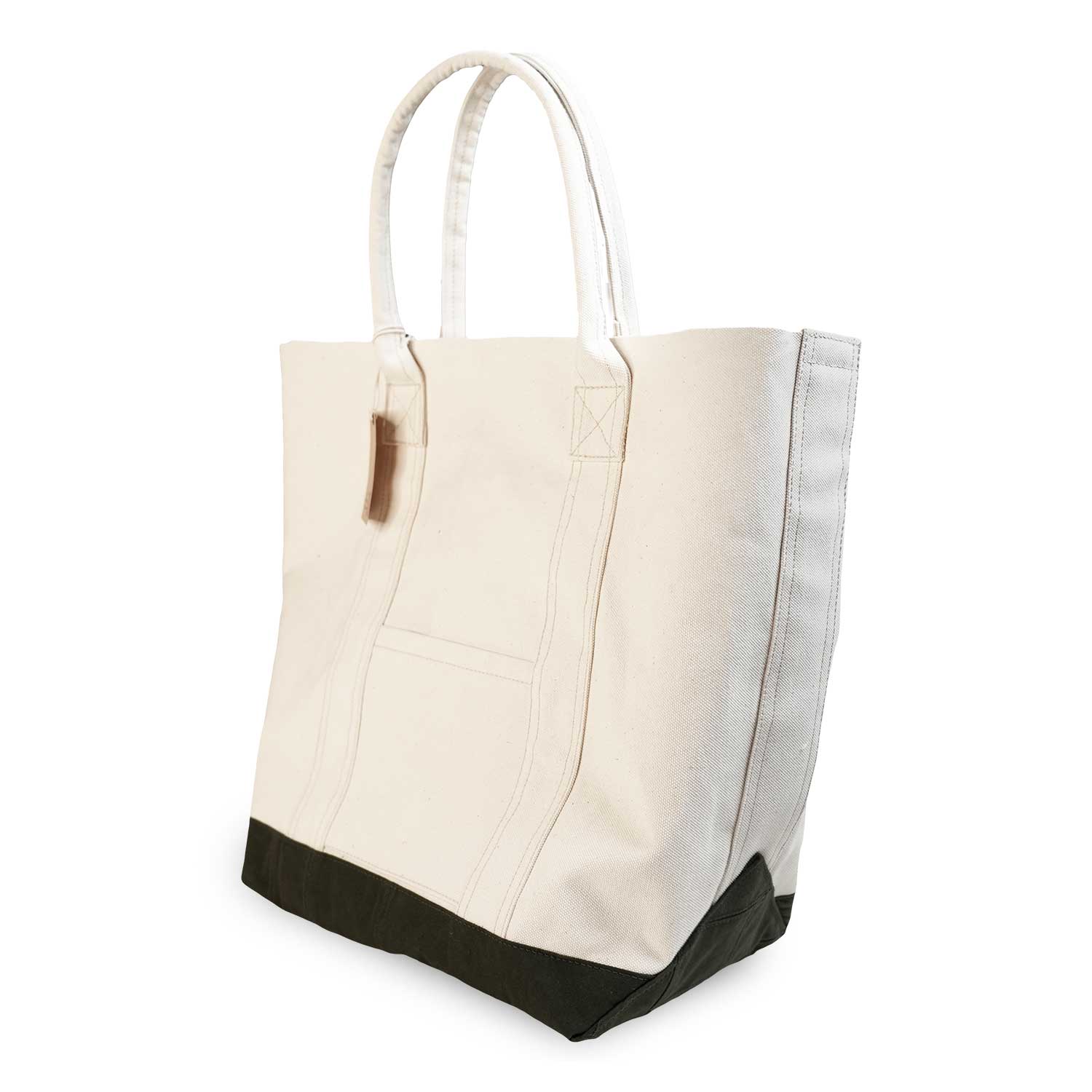 触れた瞬間に伝わる丈夫さの秘密は国産の6号帆布、底部はUSビンテージテントをパッチワークにて仕上げています。