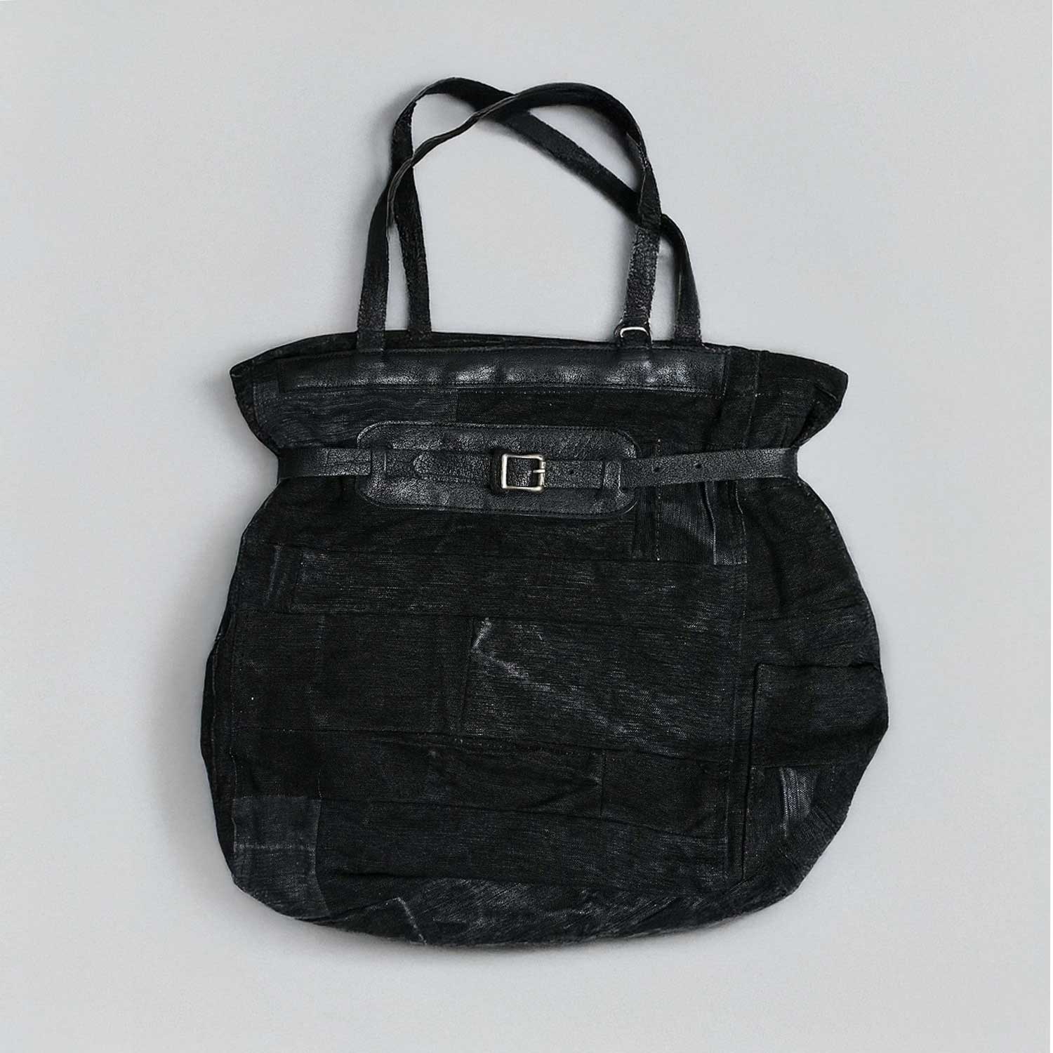 BLACK DYED DUFFLE PATCHWORK TOTE ブラックダイ ダッフル パッチワーク トート