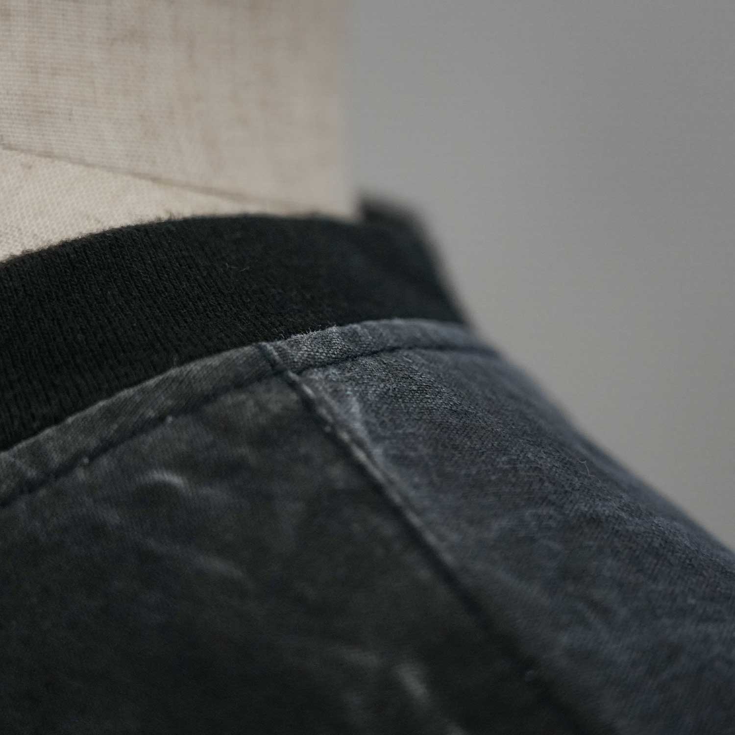 肩まわりや首元に現れる生地の張りと縫製のラインが、この服の輪郭を支えています。ディテールを見た時にも、ヴィンテージテント由来の空気がしっかり伝わる仕上がりです。