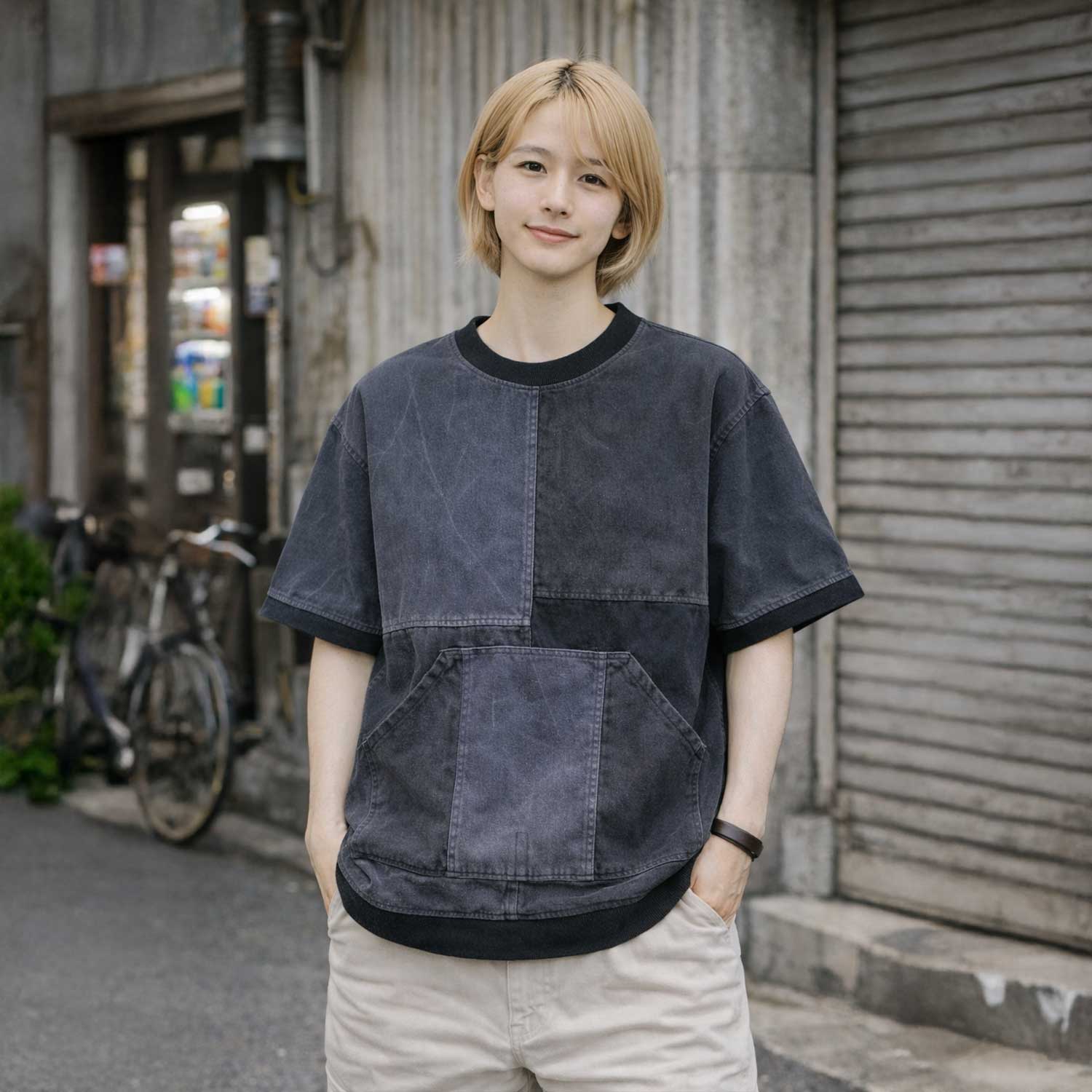 T.K GARMENT SUPPLYらしく、背景のある素材を飾りとしてではなく、日常に馴染む服として再構築した一作です。